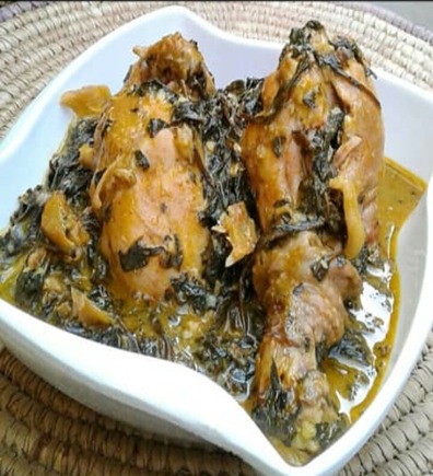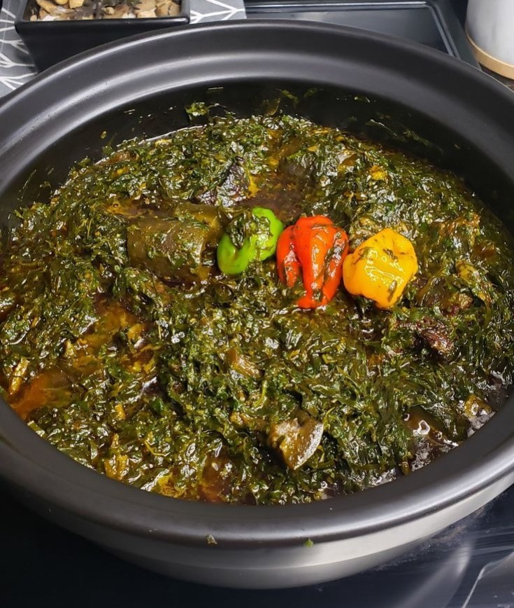 Traditional bitterleaf soup with swallow